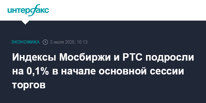 Индексы Мосбиржи и РТС подросли на 0,1% в начале основной сессии торгов