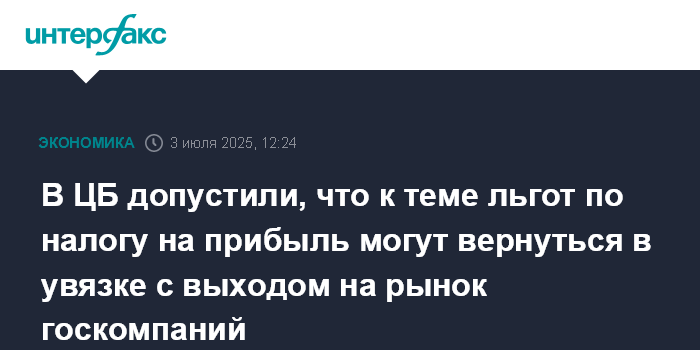 В ЦБ допустили, что к теме льгот по налогу на прибыль могут вернуться в увязке с выходом на рынок госкомпаний