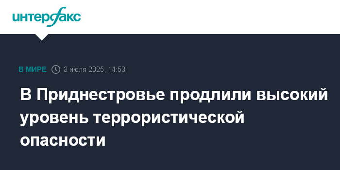 "Действие "желтого" уровня террористической опасности в Приднестровье продлевается ещё на 60 дней - до 5 сентября 2025 года включительно", - говорится в сообщении.