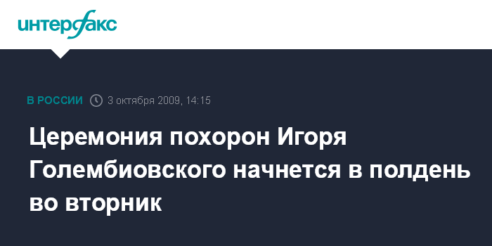 Церемония похорон Игоря Голембиовского начнется в полдень во вторник