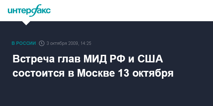 Встреча глав МИД РФ и США состоится в Москве 13 октября