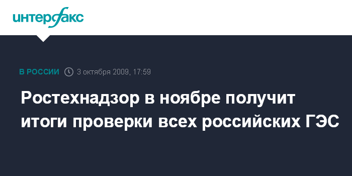 Москва. 3 октября. INTERFAX.RU - Ростехнадзор в ноябре рассчитывает получить итоги проверки всех ГЭС России, сообщил журналистам глава Ростехнадзора Николай Кутьин, комментируя результаты расследования катастрофы на Саяно-Шушенской ГЭС.