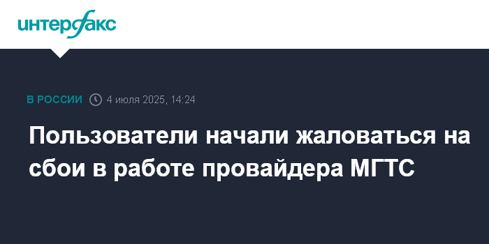 Москва. 4 июля. INTERFAX.RU - Пользователи с 14:00 начали жаловаться на сбои в работе МГТС.