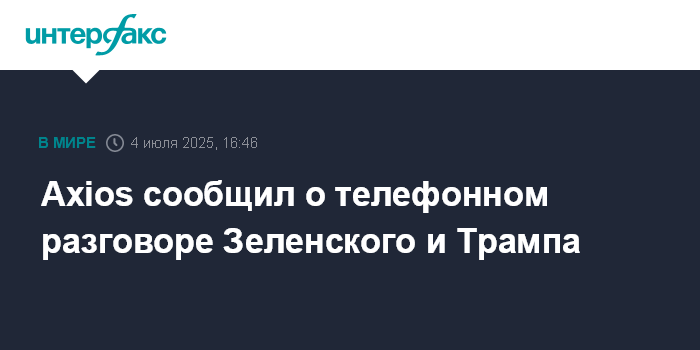 Москва. 4 июля. INTERFAX.RU - Президент США Дональд Трамп в пятницу утром провел телефонный разговор с украинским коллегой Владимиром Зеленским, сообщает издание Axios.