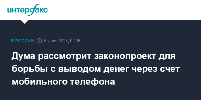 Дума рассмотрит законопроект для борьбы с выводом денег через счет мобильного телефона
