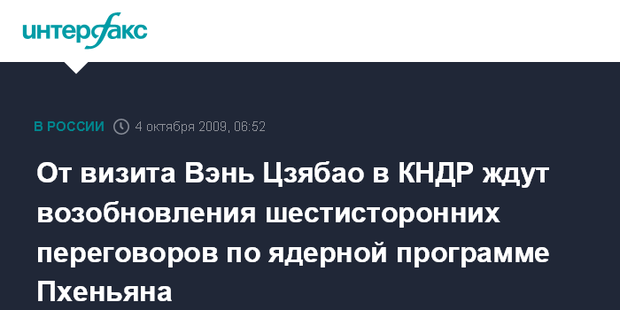 От визита Вэнь Цзябао в КНДР ждут возобновления шестисторонних переговоров по ядерной программе Пхеньяна