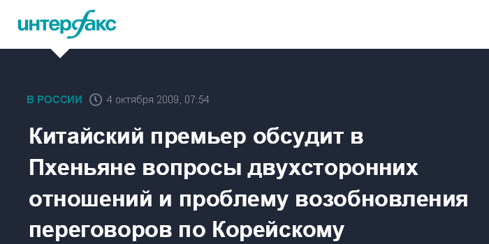 Китайский премьер обсудит в Пхеньяне вопросы двухсторонних отношений и проблему возобновления переговоров по Корейскому полуострову