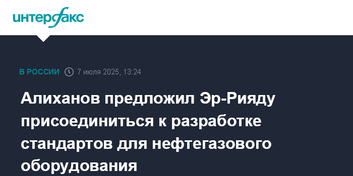 Москва. 7 июля. INTERFAX.RU - Россия заинтересована в участии компаний Саудовской Аравии в разработке независимых от запада стандартов нефтегазового оборудования, заявил глава Минпромторга Антон Алиханов, выступая на деловом форуме "Промышленный диалог: Россия - Саудовская Аравия" в рамках "Иннопрома-2025".