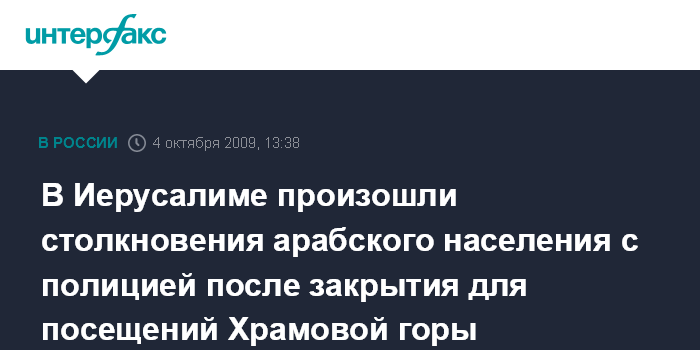 Москва. 4 октября. INTERFAX.RU - Около 150 арабов участвовали в столкновениях с сотрудниками израильских служб безопасности в Старом городе Иерусалима в воскресенье, сообщают израильские СМИ.