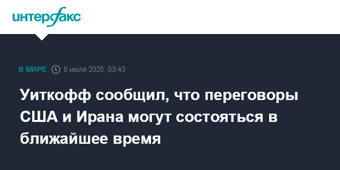 Москва. 8 июля. INTERFAX.RU - Встреча представителей США и Ирана может состояться на следующей неделе, заявил спецпосланник президента США Дональда Трампа Стив Уиткофф .