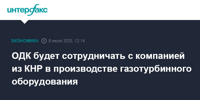 ОДК будет сотрудничать с компанией из КНР в производстве газотурбинного оборудования