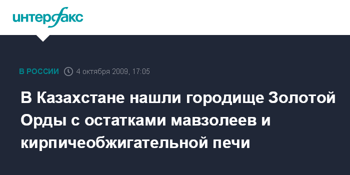 Москва. 4 октября. INTERFAX.RU - В Западно-Казахстанской области Казахстана близ села Карасу археологи обнаружили остатки древнего населенного пункта, предположительно времен Золотой Орды.