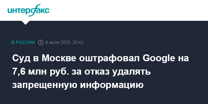 Суд в Москве оштрафовал Google на 7,6 млн руб. за отказ удалять запрещенную информацию
