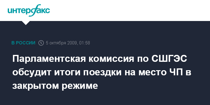 Парламентская комиссия по СШГЭС обсудит итоги поездки на место ЧП в закрытом режиме