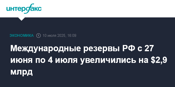 Международные резервы РФ с 27 июня по 4 июля увеличились на $2,9 млрд