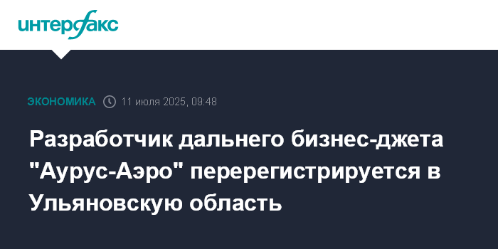 Разработчик дальнего бизнес-джета "Аурус-Аэро" перерегистрируется в Ульяновскую область