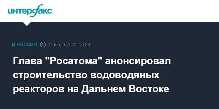 Глава "Росатома" анонсировал строительство водоводяных реакторов на Дальнем Востоке