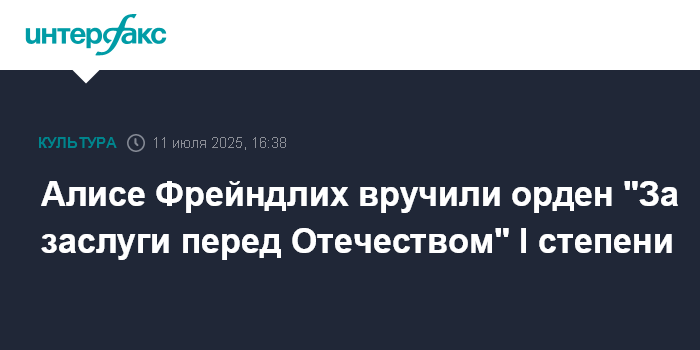 Ранее, в декабре 2024 года, на официальном интернет-портале правовой информации был опубликован указ президента РФ Владимира Путина, согласно которому Фрейндлих награждается орденом "За заслуги перед Отечеством" I степени "за большой вклад в развитие отечественной культуры и искусства, многолетнюю плодотворную деятельность".