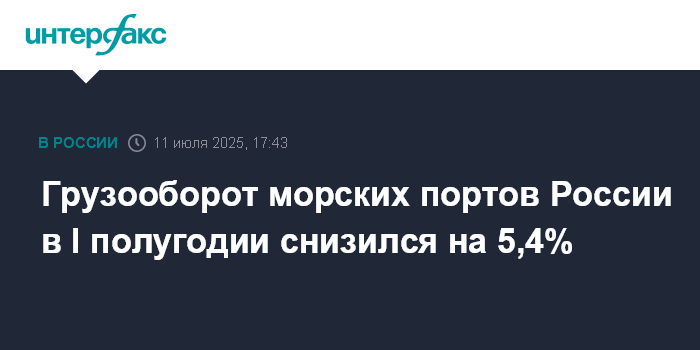 Москва. 11 июля. INTERFAX.RU - Грузооборот морских портов России за шесть месяцев 2025 года уменьшился на 5,4% в годовом измерении, до 425,2 млн тонн, сообщает Ассоциация морских торговых портов (АСОП).