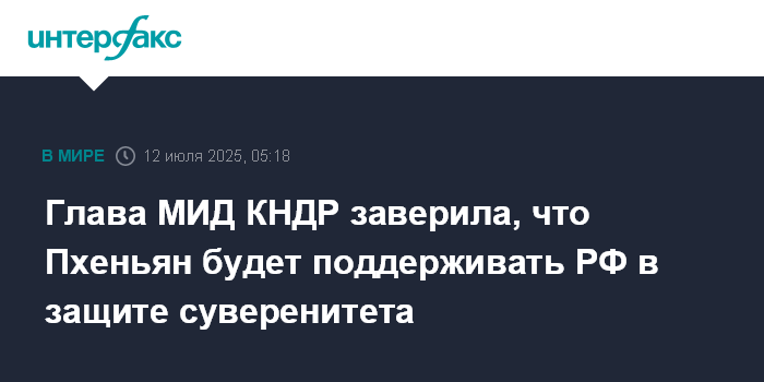 Глава МИД КНДР заверила, что Пхеньян будет поддерживать РФ в защите суверенитета