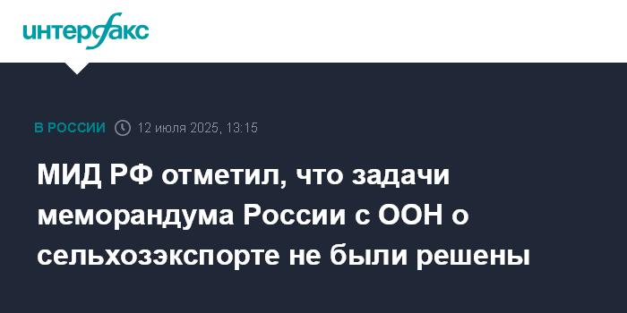 МИД РФ отметил, что задачи меморандума России с ООН о сельхозэкспорте не были решены