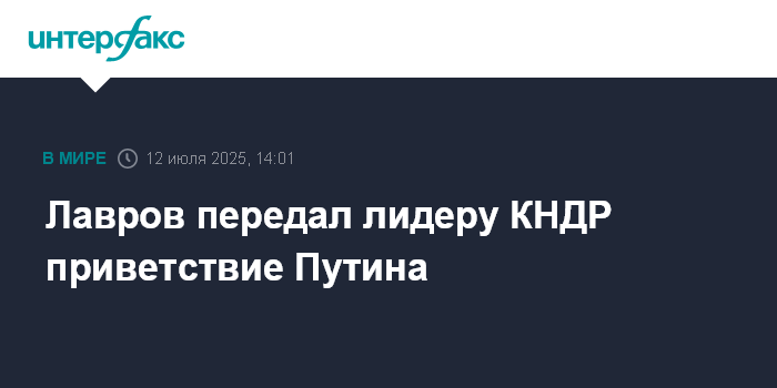 Москва. 12 июля. INTERFAX.RU - Президент России Владимир Путин рассчитывает на продолжение прямых контактов с лидером КНДР Ким Чен Ыном в самое ближайшее время, заявил в субботу глава МИД РФ Сергей Лавров.