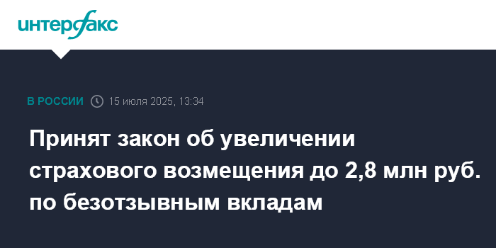 Принят закон об увеличении страхового возмещения до 2,8 млн руб. по безотзывным вкладам