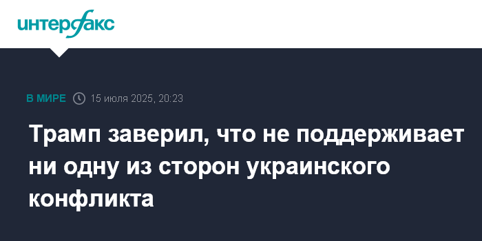 Москва. 15 июля. INTERFAX.RU - Президент США Дональд Трамп заявил, что не поддерживает ни Москву, ни Киев в том, что касается украинского конфликта, сообщает во вторник Bloomberg.