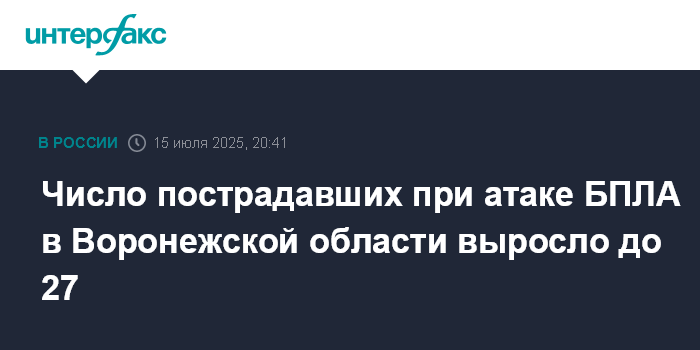 Число пострадавших при атаке БПЛА в Воронежской области выросло до 27