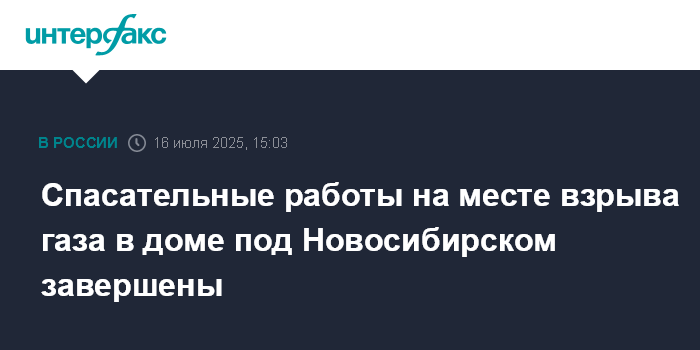 Москва. 16 июля. INTERFAX.RU - Пресс-служба МЧС РФ сообщила о завершении аварийно-спасательных работ на месте взрыва газа в жилом доме в поселке Красный Яр Новосибирской области, в то же время разбор конструкций здания продолжается.