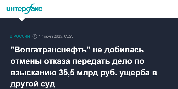 "Волгатранснефть" не добилась отмены отказа передать дело по взысканию 35,5 млрд руб. ущерба в другой суд