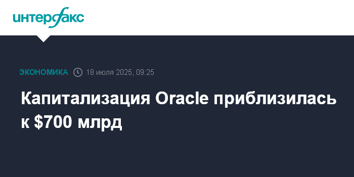 Москва. 18 июля. INTERFAX.RU - Котировки акций Oracle Corp., одного из крупнейших мировых разработчиков программного обеспечения, выросли на 3,1% по итогам торгов в четверг, в результате его капитализация вплотную приблизилась к $700 млрд.