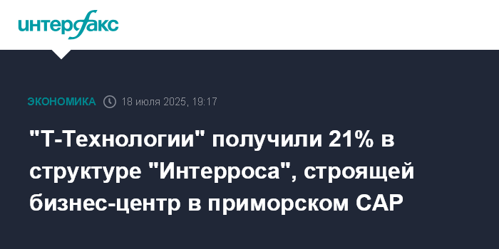 "Т-Технологии" получили 21% в структуре "Интерроса", строящей бизнес-центр в приморском САР
