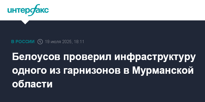 Москва. 19 июля. INTERFAX.RU - Министр обороны РФ Андрей Белоусов проинспектировал объекты военной и социальной инфраструктуры в одном из гарнизонов в Мурманской области, сообщили в субботу в военном ведомстве.