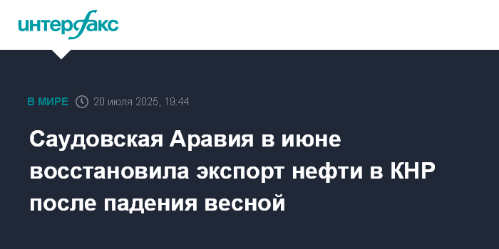 Саудовская Аравия в июне восстановила экспорт нефти в КНР после падения весной