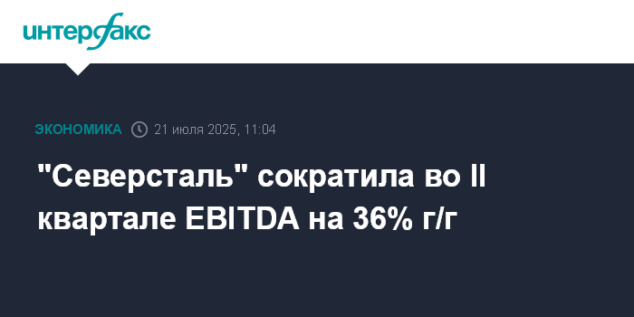 Москва. 21 июля. INTERFAX.RU - Северсталь" во II квартале 2025 года сократила EBITDA на 36% в годовом исчислении, до 39,3 млрд рублей, сообщила компания. По сравнению с предыдущим кварталом показатель не изменился.