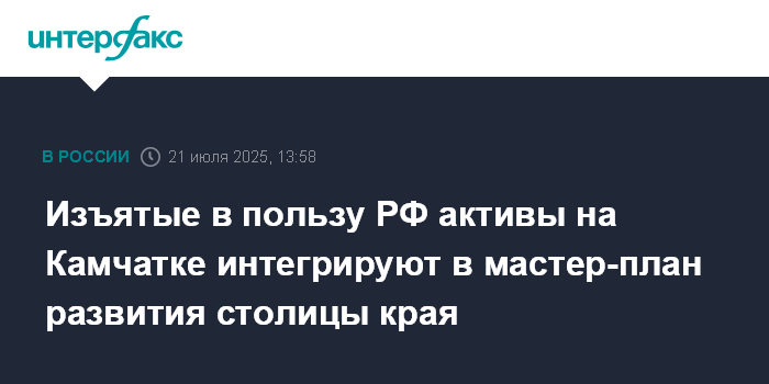 Изъятые в пользу РФ активы на Камчатке интегрируют в мастер-план развития столицы края