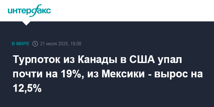Турпоток из Канады в США упал почти на 19%, из Мексики - вырос на 12,5%
