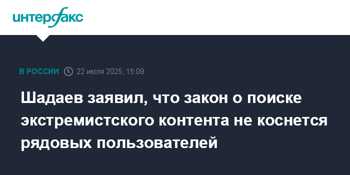 Шадаев заявил, что закон о поиске экстремистского контента не коснется рядовых пользователей