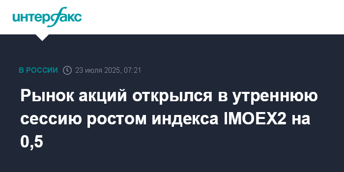 Москва. 23 июля. INTERFAX.RU - Рынок акций РФ на старте торгов утренней сессии на Мосбирже в среду демонстрирует плавный рост в ожидании очередного раунда российско-украинских переговоров в Стамбуле; поддержку рынку также оказывают ожидания очередного снижения ключевой ставки ЦБ на заседании 25 июля и в целом благоприятная конъюнктура мировых рынков капитала, в том числе растущие цены на нефть.