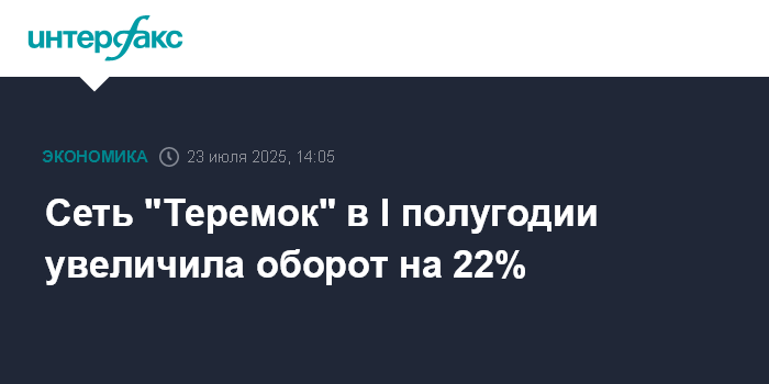 Москва. 23 июля. INTERFAX.RU - Оборот сети ресторанов "Теремок" в первом полугодии 2025 года вырос на 22,2%в годовом исчислении, до 12,1 млрд рублей, сообщает пресс-служба компании.