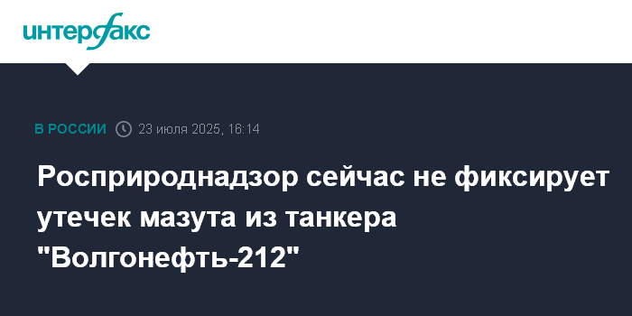 Росприроднадзор сейчас не фиксирует утечек мазута из танкера "Волгонефть-212"