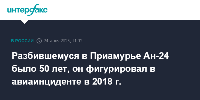 Разбившемуся в Приамурье Ан-24 было 50 лет, он фигурировал в авиаинциденте в 2018 г.