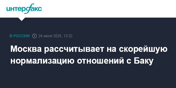Москва рассчитывает на скорейшую нормализацию отношений с Баку