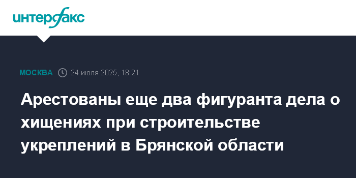 Арестованы еще два фигуранта дела о хищениях при строительстве укреплений в Брянской области