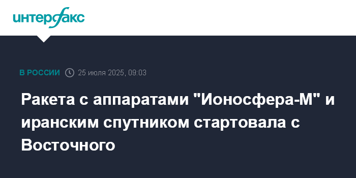 Ракета с аппаратами "Ионосфера-М" и иранским спутником стартовала с Восточного
