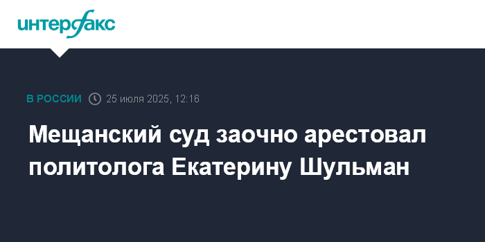 Москва. 25 июля. INTERFAX.RU - В Москве Мещанский суд санкционировал заочный арест политолога Екатерины Шульман (признана в России иноагентом).