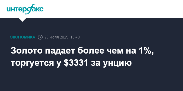 Золото падает более чем на 1%, торгуется у $3331 за унцию