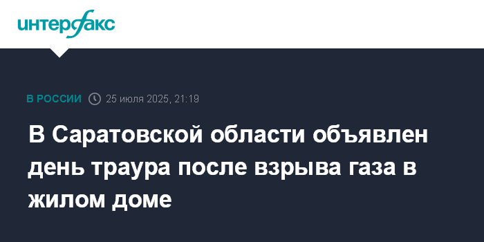 Москва. 25 июля. INTERFAX.RU - День траура объявлен в субботу в Саратовской области в связи с гибелью людей в многоэтажке в Саратове, сообщил губернатор Роман Бусаргин в своем телеграм-канале.