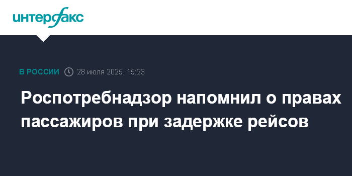 Москва. 28 июля. INTERFAX.RU - В Роспотребнадзоре напомнили о правах пассажиров при задержке рейсов, а также о работе горячей линии по правам потребителей при задержке рейсов.